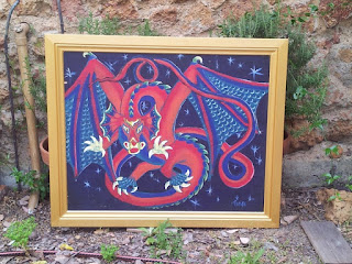 The other thing I did this week was finish painting the new frame Andrew made for this dragon I did for my sis, Jen, many years ago.
